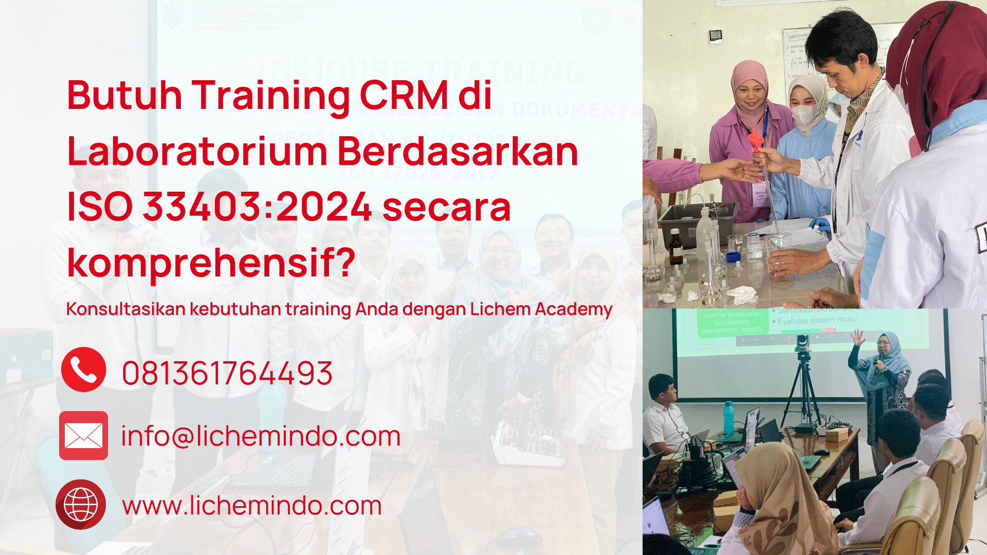 Ingin memastikan penggunaan Certified Reference Material (CRM) di laboratorium sesuai standar ISO 33403:2024? Hubungi Lichem Academy untuk pelatihan teknis, panduan praktis, dan pendampingan sistem mutu melalui bit.ly/tanyalichemacademy.